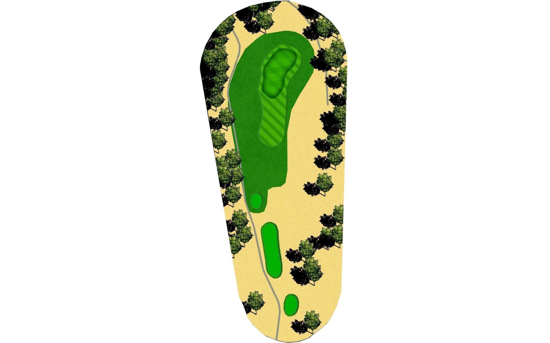 Tough Par 4 that is a slight dogleg right. There is a creek that runs 10 yards short of the putting green. The putting green is undulating with a false front edge, but most of the green flows back to front, and is a very tough green to read. *Player Note: Longer hitters can get into trouble if their tee shot goes too far left- they will be blocked out by the trees for the approach shot. Put your approach shot in the Middle of the green for any hole location.